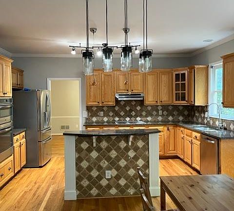 Beautiful John Wieland home in desirable Creekside Subdivision. Kitchen updated w/granite, tile backsplash, & light fixtures. Extra hardwoods added on main, upstairs hall, & master BR. Family room w/built in bookcases. Master bedroom features hardwood floors + 3 secondary BR & laundry up. Full Finished Daylight Basement w/media room, wet bar, BR & full bath w/slate tile. Very private, fenced backyard w/prof. landscaping, garden boxes & irrigation system. One of the best lots! Newer HV/AC units & roof. Creekside amenities: pool w/slide, clubhouse, playground, tennis cts.