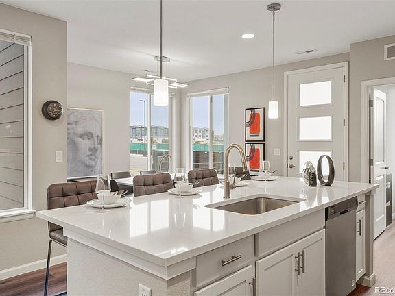 Don't miss this opportunity to purchase a 1700+ square foot, 4-bedroom duplex with upgraded finishes and an oversized 2-car garage. Completed in 2022, this home is practically brand new. A quaint patio welcomes anyone entering the front door and, upon entry, greeted with a bright and sunny open living space. Dining is situated adjacent to the kitchen with quartz countertops (seating for 4) and upgraded cabinetry. A small room next to the kitchen may be used as an office, pantry or playroom. The family room and access to the private, side-yard are open to the kitchen and between the stairway and powder room. A large closet, off the oversized, 2-car garage, is perfect for coats, gear or storage. At the top of the stairs a full bathroom is situated between 2 bedrooms providing both convenience and privacy. One of the three bedrooms could be used as office space too. The primary bedroom is spacious with a large, walk-in closet and 3/4 bath with upgraded finishes. The bathroom boasts double sinks, a linen and water closet. Views of the Rocky Mountains are clear from the primary bedroom. A generously-sized laundry room is located on the upper floor, close to the primary bedroom. This home has the ideal layout to accommodate today's lifestyles! There is a minimal HOA fee; there is NOT a metro-tax. The HOA is friendly to long-term rentals.