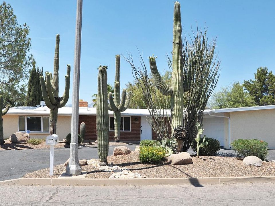 adobe brick home with several mature saguaros in front. great for family + home office or large rec room, or suite, or family room. large grass yard with numerous trees, flowers, large parking area for guests, quiet street centrally located. Neighborhood Description quiet neighborhood. street does not directly connect to craycroft or rosemont which limits through traffic. surrounded by post office, churches, school. many mature neighbors, first time owners, and families. close to shopping, direct route to dm, u of a, close to shuttle for tucson/phoenix.