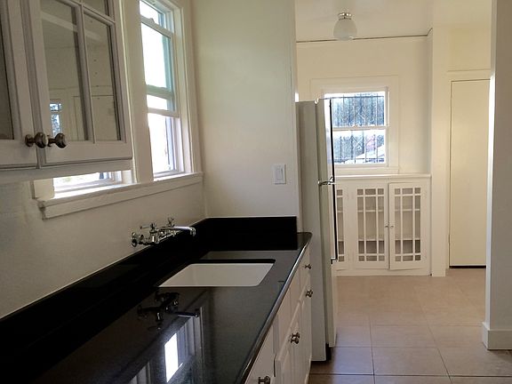 Available March 1: approximately 1150 square foot upper unit in 1914 two-story, tiled roof stucco duplex featuring large living room with built-in cabinets, separate dining room, and two bedrooms all with hardwood floors, kitchen with gas stove, laundry room with washer and dryer, fenced back yard. Owner pays yard maintenance. Easy permitted on-street parking. One and a half blocks to College Avenue shops and restaurants. Walking distance to BART and bus. Pets negotiable. First month's rent plus $2000 refundable security deposit.