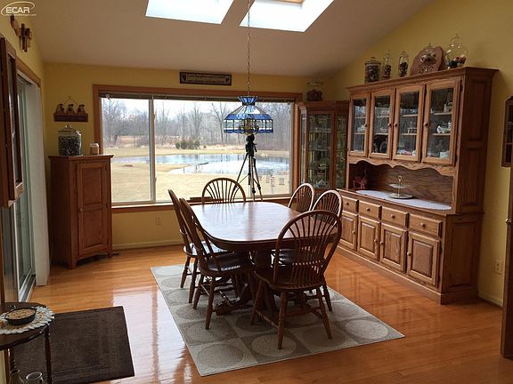 Country living at it's best with this beautiful custom-built home situated on 20 gorgeous acres that includes a pond, woods and an overabundance of wildlife. This must see' home offers a kitchen w/island and custom cabinets, a breakfast nook w/skylight as well as an enclosed/heated sunroom. The great rm includes vaulted ceilings and fireplace. The first floor master suite is complete with a gorgeous master bath and walk-in closet. The second level boasts 2 bedrooms, 2 full baths plus 2 additional sitting rooms. This home also offers a finished walk-out lower level complete with kitchenette and full bath. Two-car garage, bonus room above the garage, and large 32 x 40 pole building w/oversized door tops off this perfect home.