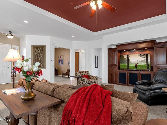 Enjoy the great room with friends and family, or just relax, with built-in entertainment center, surround sound also in bedroom and shutters throughout the home.