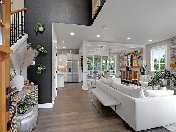 Welcome to this stunning Craftsman home built in 2021, blending timeless elegance with contemporary flair. As you enter, you're greeted by a charming covered front porch and vaulted ceilings that lead to a bright, light-filled living room. The open great room concept seamlessly connects the family room, kitchen, and dining area, ideal for modern living. High-end finishes and designer details throughout make this home truly exceptional. The spacious customized backyard, featuring hardscape and turf, is perfect for entertaining or relaxing. With one bedroom on the main, the upper level boasts three cozy bedrooms. The primary suite is generously sized with a luxurious en suite bathroom and posh design. A large walk-in shower with stylishly appointed fixtures and freestanding soaking tub offers ultimate relaxation with serene views of the West Hill's territory, adding a touch of nature to your routine. A fully equipped ADU on the lower level offers significant value, perfect for a nanny or in-law suite. Nestled close to shops, restaurants, bakeries, Multnomah Village, and Hillsdale, this home is ideally located. Impeccably styled and move-in ready, this house leaves nothing to be desired. Discover the perfect blend of luxury and comfort in this exquisite Modern Craftsman home!