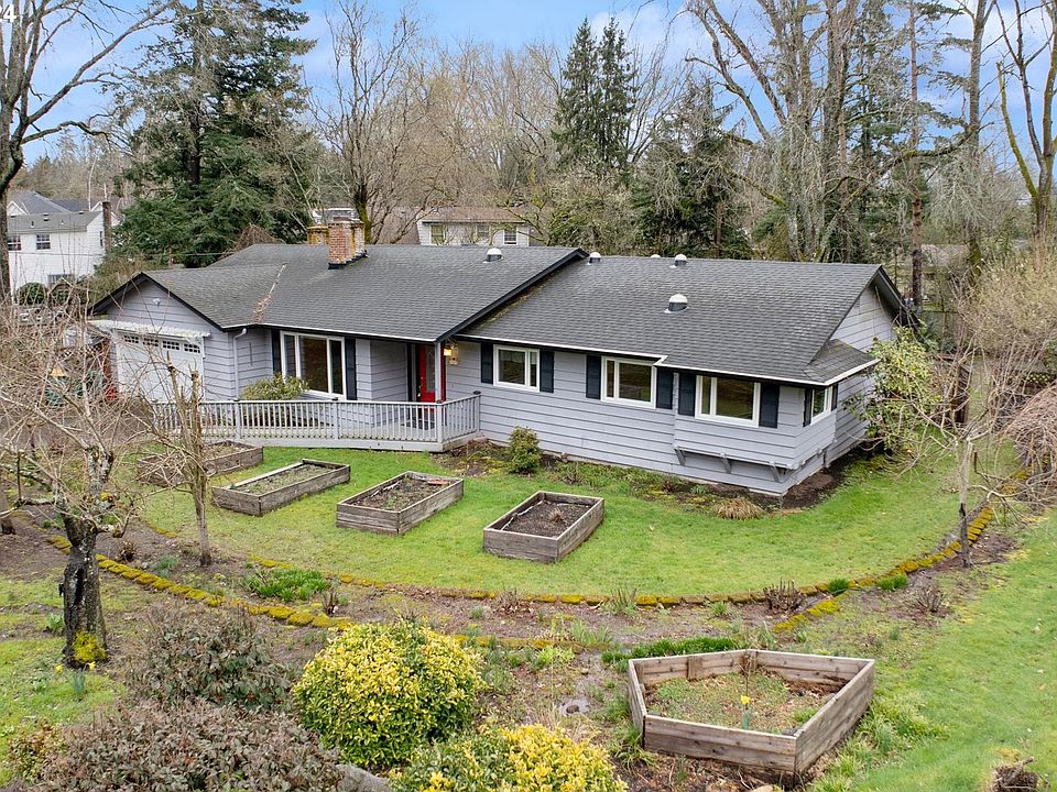 This charming one-level home in highly desirable Raleigh Hills neighborhood presents a wonderful opportunity for those seeking a blend of comfort and potential. Boasting an open floor plan adorned with hardwoods, fireplaces, and updated features like vinyl plank flooring, a traditional kitchen and modernized bathroom, this home offers both coziness and opportunity.With a spacious living room and family room, complete with bookcases and abundant natural light streaming through sliders makes hosting family, friends and events a joy whether an interior or outdoor party.Spend winter with the ambiance with a colorful fire in the wood burning fireplace where reading your favorite mystery will lose you in the pages. The sizable primary bedroom offers a slider that steps outside to a wonderful dog run. The ensuite shower and long closet provides a canvas to create a private retreat within the home.With a .32 acre lot comes endless ideas for customization and expansion, making it ideal for those with pets, desire for more space, or aspirations to tailor the property to their specific needs and preferences. Gardeners can spend cathartic hours getting their hands dirty with raised beds and fruit trees including apple. Sport enthusiasts can play volleyball, badminton, or soccer. The fun is endless!This one level gem is located in proximity to New Seasons, pharmacy, garden store, restaurants, Kaiser, and minutes to downtown Portland or Beaverton all within a beautiful and serene neighborhood. Seller to do no repairs.