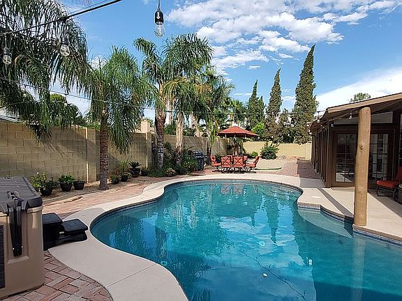 Comfortable family home in a great neighborhood with no HOA. Wide streets and mature landscaping. 3 bedroom, 2 bath Santa Fe style home block construction with stucco, an extra AZ room approx 280 sq ft. with lots of windows overlooking the pool. Salt water pool was resurfaced last summer with new pebble tec and tile. 10ft diving pool. New appliances in kitchen, granite countertops. Double side gate to store all your toys behind wall. 2 car garage with attached carport and workshop. Earliest close date of 10/15/22. Potential for owner to rent back if purchased as investment property. Owner has an inactive real estate license. Willing to work with buyer agent, commission negotiable