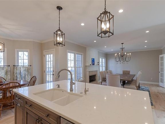 • Kitchen Features: Eat-in Kitchen, Pantry, View to Family Room, Stone Counters, Kitchen Island, Cabinets White