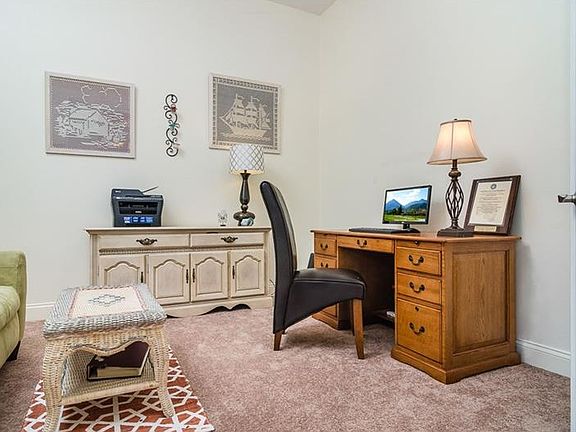 USDA ELIGIBLE! Beautiful gated community of Kinsley Court. This 4 bedroom, 3 bath home (plus an office/separate living room/library) was the model home for Hulbert Homes when built in 2007. Kitchen has granite counter tops, stainless appliances, solid wood cabinets, recessed lighting and 18 inch tiles. There is a beautiful view of the pool and fenced in backyard from the breakfast nook and family room. Large master bedroom with master bath featuring dual sinks, garden tub, separate shower and large walk in closet. The pool is absolutely stunning with covered lanai for your outdoor entertaining. All new interior paint. Carpets were replaced within last 60 days in all 4 bedrooms and office. All roads in this community have just recently been re-surfaced.