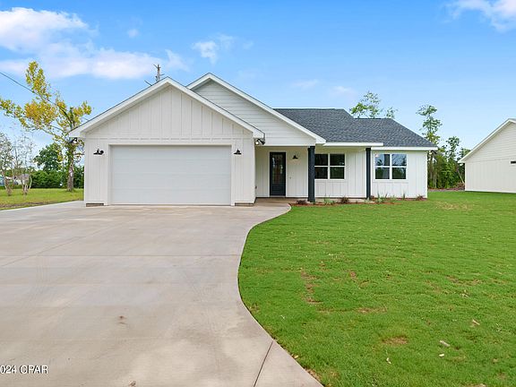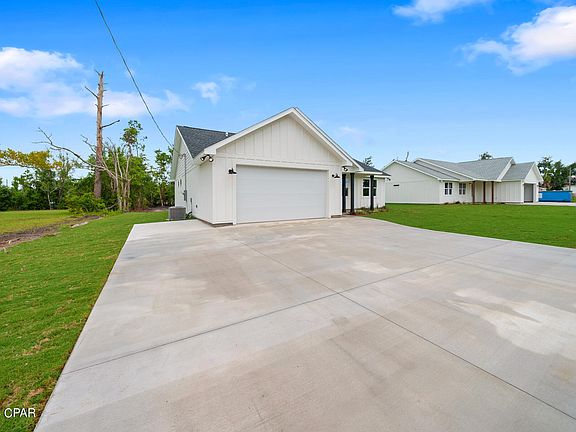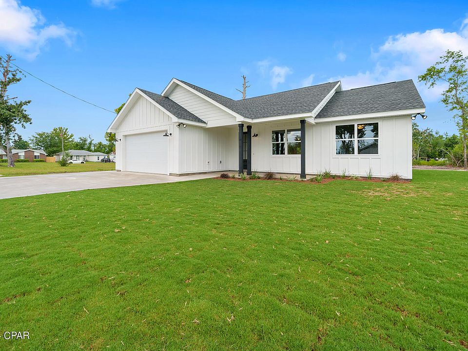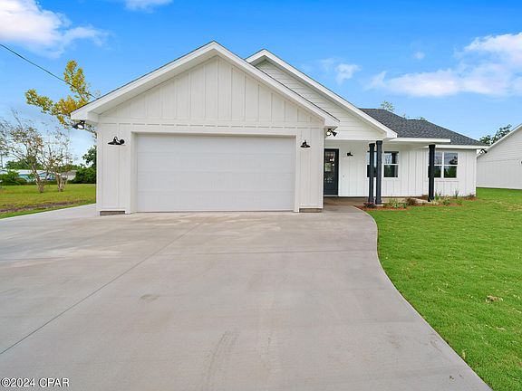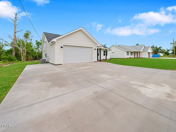 Discover your dream home in this newly constructed 3-bedroom, 2-bathroom gem, perfectly situated just a 5-minute drive from Tyndall Air Force Base. From the moment you arrive, you'll be captivated by the elegant board and batten siding and the meticulously landscaped yard. Step inside to find a spacious, open floor plan featuring 9-foot ceilings and luxurious vinyl plank flooring throughout. The gourmet kitchen is a chef's delight, boasting high-end countertops and premium finishes that seamlessly blend style and functionality. The bathrooms are a true retreat, with custom tile showers adding a touch of luxury to your daily routine. Designed with modern living in mind, this home also offers extra parking space on the side for your boat or recreational vehicle. Perfect for families and outdoor enthusiasts alike, this property combines convenience, luxury, and impeccable craftsmanship in one unbeatable package. Don't miss your chance to make this stunning house your new home! Measurements are approximate buyer must verify if important.