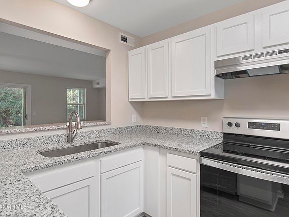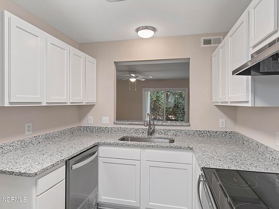 Location and updates galore in this wonderful 3 bedroom and 2 full bathroom, lower level ,one floor condo. The community of Hawthorne Park is centrally located in Wilmington, only 5 miles to Wrightsville Beach, 1 mile to UNCW, and 6 miles from the historic downtown. This condo offers a freshly renovated kitchen with new appliances, new LVP flooring, recently painted, as well as updates to the vanities in both bathrooms. Move in and make yourself feel right at home in one of the most convenient locations in town. The kitchen offers a pass thru to the spacious living and dining room area. There is a sliding glass door off the dining room that provides access to the back porch where you will find an outdoor storage closet. The condo provides 3 bedrooms as well as a hall laundry space. The Master bathroom is outfitted with a new 2 sink vanity. The additional two bedrooms share the 2nd bath. This building is quietly tucked away at the back of the complex with mature trees and provides 2 parking spaces. Hawthorne Park is located near to some of the best restaurants, shopping, and activities in town. Welcome home to Wilmington!