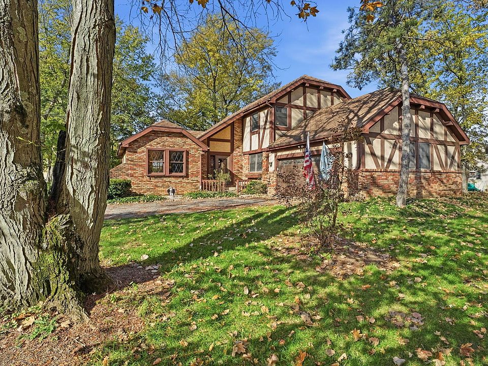 Experience timeless elegance and serene living in this stunning Tudor-style residence situated on a picturesque .4-acre lakefront lot in the highly sought-after Timberlake community. Featuring 3 bedrooms and 2.5 baths, this home beautifully combines classic architectural detail with modern comforts.