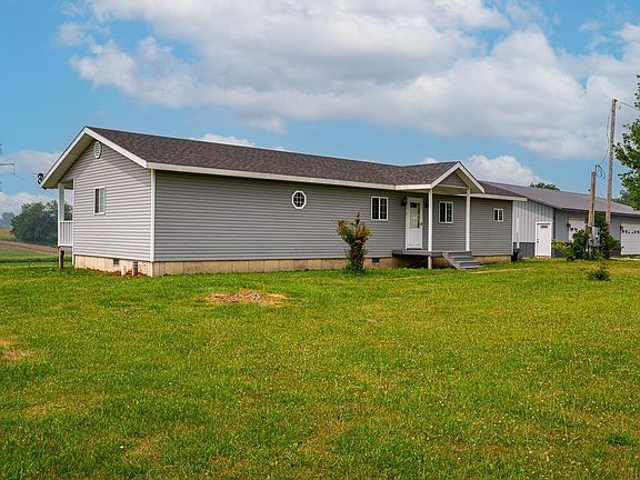 Welcome to this 2016 ranch on nearly 5 acres. Step through the front door into the spacious open concept great room, featuring a beautiful stone fireplace. The kitchen sits directly off the living area, features oak cabinets, and 2016 Maytag stainless steel appliances. Laundry room is conveniently located off the kitchen. Two bedrooms and full bathroom are privately located down the hallway. Master bedroom boasts 14x15 sq ft with a large 4x8 walk in closet. Oak trim, doors, and cabinets throughout the home. Step out back off the main living area onto the oversized deck spanning the entire back of the house, where quiet and serene country living awaits! This home boasts 2 large outbuildings. The 56x52 ft pole barn includes a 10k lb Atlas lift and 14ft ceilings. The 2016 outbuilding is 56x36 ft, on poured concrete, has a separate electrical panel, 10ft ceilings, and metal roof/walls. Completely move in ready, this home is ready for its next owner. Be sure to check out the 3-D tour.