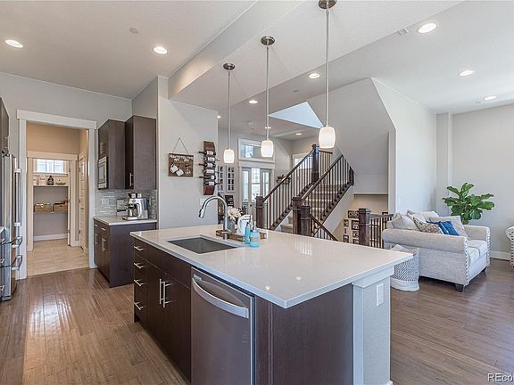 Welcome home to this beautiful Craftsman style home in the Hyland Village community of Westminster, Colorado. Here you will find a delicately planned community with exquisitely crafted homes that are centered around parks and open space areas. This charming home sits on a premium corner lot and welcomes you with an inviting porch and meticulously maintained landscape. Once inside you will begin to take in all of the amazing fine features and quality upgrades that this home has to offer. The spacious true open concept floor plan is flooded with natural light through the abundance of windows with soaring 10' ceilings and extended wide-plank wood floors. The gourmet kitchen is a Chef's dream! Enjoy a compliment of stainless steel appliances, gorgeous expanded granite, custom glass tile back-splash upgraded lighting and coffee bar area. The floor plan perfectly flows into the large family room where you will find a relaxing space with a cozy gas fireplace with room for the largest mounted T.V. The main floor is complete with a dining area, flex room that is perfect for a home office or spare bedroom, mud room and a guest bathroom. The upper level features a luxurious master suite. Indulge yourself in the spa-like en suite with a double vanity, large soaking tub, shower and all accented with beautiful custom tile. The upper level is complete with two additional bedrooms, a full Jack & Jill bathroom and a convenient laundry area. The basement in this spectacular home has been finished to add a large room that is perfect for a theater room or gaming area, large bedroom and full guest bathroom. You will love the outdoor living area with hanging lights, a no maintenance synthetic turf yard that is perfect for entertaining and across from a neighborhood open space area. This remarkable home has energy efficient solar installed and is close to the community pool, shopping, restaurants, Hwy 36, RTD Light Rail, Bus Lines, Boulder and the new Downtown Westminster District.