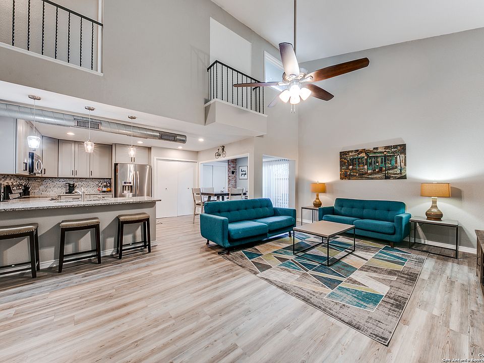 - One Living Area, Eat-in Kitchen, Breakfast Bar, High Ceilings, Open Floorplan, High Speed Internet, Walk-In Closet(s), Master Downstairs, Ceiling Fan(s), Solid Counter Tops, Programmable Thermostat