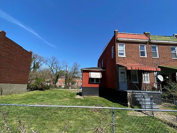 Perfect opportunity for a home owner or investor to own an end of group row home near Pimlico. This row home has the largest lot in this community. Adjoining lot is included with sale. Addition bump out has closet for bedroom or storage. Home has been freshly painted and cleaned for your convenience. Yard is fully fenced, and off street parking is available in alleyway. Don't miss out on this opportunity. Many Homebuyer grants available.