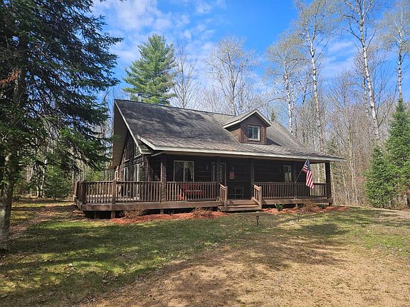 Ponderosa in the Pines ! Classic northwoods log sided chalet home. Open living area with a vaulted knotty pine ceiling , solid oak wood flooring , maple cabinery, wood stove with fieldstone hearth. 2nd story loft bedroom with a half bath. There is a spacious enclosed porch, open sun deck , covered porch entry and 2 car detached garage. 2.25 acres for a great private wooded setting . This property is well maintained and move in ready, could be sold turn key with all appliances, most furnishings and incidentals included. Ideal recreational location near Almon Park- see attached docs , and on a designated ATV route , yet not too far out from town conveniences.