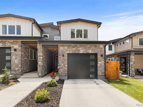 Gorgeous, contemporary ½ duplex in the fantastic Regis neighborhood. Built by MAG builders, this stylish, modern home features a spacious open floor plan with plenty of room to relax and entertain. This home exudes style and comfort as soon as you step into the main floor featuring stunning hardwood floors, designer finishes, and airy, illuminated spaces throughout. The gourmet kitchen is highlighted by stainless steel appliances, an oversized island, gas range, quartz countertops and designer lighting with adjacent dining room. The voluminous living space boasts a stone floor to ceiling gas fireplace and flows seamlessly to the private back yard through dual glass sliders. Follow the custom board and batten accented staircase up to the fantastic second level which offers a spacious primary suite with private balcony, a luxurious ensuite 5 piece bathroom with walk-in closet, plus two additional bedrooms, a full bathroom and a convenient laundry room with sink. The fully-finished basement adds additional entertaining space with a large family room, study/office, guest bedroom, bonus space and a full bathroom plus abundant storage space. Professionally landscaped outdoor spaces and an attached oversized 1-car garage complete this modern masterpiece! Amazing location close to the great shops and restaurants on Tennyson Street plus parks, lakes, and Willis Case golf course all with easy access to downtown, major highways and the light rail. Don’t miss this one! Watch the video tour here: https://youtu.be/F1Cqq7O4tME