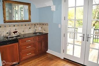 The beauty is in the meticulous details of this exceptional 5 bedroom 4½ bath, Stucco Colonial Style with spectacular 2008 addition and renovation by award winning architect Wayne L. Goode, Good Architecture, P.C., Annapolis, MD.Entry LevelFOYERTradition Center Hall Foyer (12'9"x7'7"): set back staircase and original oak handrail and balustrade leading up to the Second Level; Divided Light French Entry door with Decorative glass transom and side lightsLIVING ROOMDouble French door opens to (23'9"x13'1") spacious room, hand painted faux stone wall, wood burning fire place with terracotta tile hearth, decorative screen LIBRARY- OFFICETwo Separate Single French door entries into the private (17'9"x9'7") room with bright daylight; Walls of Built-in bookshelves; Bead Board ceilingMASTER BEDROOM SUITE*Double French door entry to spacious bedroom (15'7"x13'); French Pocket door with frosted glass to Dressing Room (7'7"x7'7") with wall-to-wall frosted glass door wardrobe; French Pocket door with frosted glass entry to luxurious Master bathroom with imported marble tile glass enclosed zero threshold steam shower, double mirror poured cement vanity, cherry cabinets with beverage bar and under the counter built-in U-Line refrigeratorFOYER POWDER ROOM*Pocket door entry and designer stained cherry cabinetry; Porcher, Toto and Jado bathroom fixtures, Kohler Vessel sinkDINING ROOM*Open transition Dining Room (13'1"x8'10"); Multiple oversized French casement Loewen windows; Arched and open entriesWET BAR AREA*Open entertaining area (11'2"x6'5") with full bright daylight; Custom Cherry Cabinetry with Ubatuba Granite Countertop natural tumble stone tiles and crushed glass inset surround and stainless steel sink; Custom Built-in U-line refrigerator; Double French doors to balcony; Arched entry ceiling detailsKITCHEN*Grand Chef's Kitchen (23'2"x14'10") of the highest quality with 12'8" ceiling; Wayne Goode Signature "3 over 3 wrap around seamless corner windows"; Custom coffered ceiling with recessed lighting; Custom cherry cabinetry with honed Black Granite Countertops; Top of the line Viking Six Burner Stove with double ovens and grill; Dacor custom designed wood exhaust hood with side pull out built-in spice racks; Natural tumble stone tiles with crushed glass inset back splash; Auto-open Microwave Drawer; Two Stainless Steal sinks with Hansgrohe faucets, one featured with instant hot water; Borsch Dishwasher with custom cherry design; Stainless Steel Side-by-Side Refrigerator with water and ice dispenser; Imported French Sideboard and Breakfront; Custom Baker's Station with pop-up mixer stand; Accent Stain glass insets and French casement windows; French door opening to entertaining balcony; Imported Egyptian Alabaster glass light fixture and custom hand blown pendant lights; Separate HVAC System (includes Lower Level); Steel frame constructionMUD ROOM*Large bright day light (9'5"x8'7") space; Custom built floor to ceiling pickled cabinetry; Framed Portal custom window; French door to drive waySecond LevelHALLWAY LANDINGOpen (7'5"x7'5") area; Double door Cedar closetHALL BATHROOMContemporary newly renovated; Cesame double porcelain vanity with chrome towel racks and Vigo chrome faucet; Custom fired glazed accent tiles; Concealed medicine cabinet; combination tub and shower; Porcelain tile floorSECOND MASTER BEDROOM Spacious (15'8"x13"1") room with Oak hardwood floor; Stunning newly renovated bathroom with shower; Seamless glass shower wall; Travertine marble floor; Vessel sink with Price Pfister faucetTHIRD BEDROOM Spacious (15'8"x13"1") room; Walk-in closet with window; Crown moldingFOURTH BEDROOMSpacious (17'11"x13") room; Double door closet with light; Contemporary Track LightingLower LevelWINE CELLAR ROOM*, 7'11"x7'10"Imported Antique Wooden Scottish Double Doors with Original forged iron hardware; Painted natural brick walls with Ceramic tile floorKITCHENETTE*All new contemporary style countertops, cabinets, stainless steel sink , Microw
