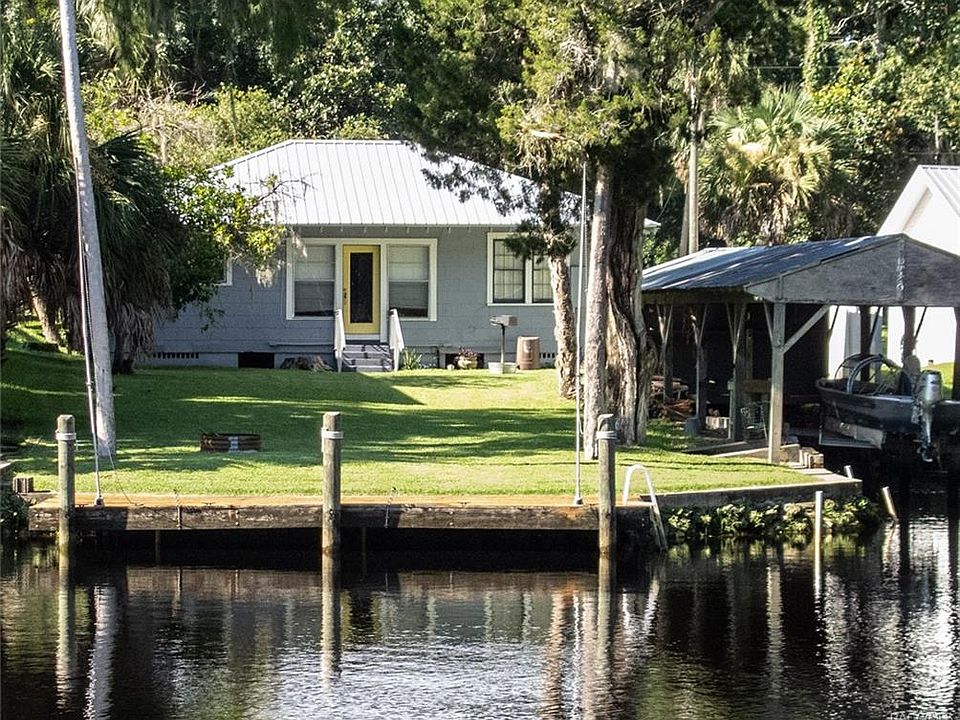 Charming home on the pristine Withlacoochee River in quaint Yankeetown, Florida. Furnished and move in ready. From your deep water dock, it's less than 4 miles along the beautiful and scenic river to the Gulf of Mexico. Sailboat? Flying bridge? No problem because there are no bridges. Ideal vacation or permanent home in the heart of the Nature Coast. Direct river front with a covered boat house with a lift and slip for your fishing skiffs. Even has a fish cleaning station which you will need because the area has some of the best fishing in the entire State of Florida. Has a metal roof and inside - elegant hardwood floors. Come take a look. Don't wait because this unique and exciting property won't be on the market long.