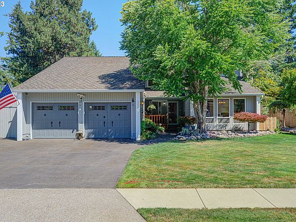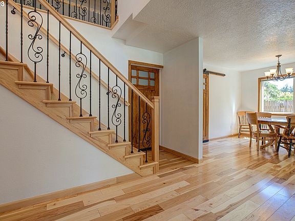 OPEN Sat/Sun, March 16/17th (1-4).Step inside to a vaulted NW contemporary style home with gorgeous newer hickory hardwood floors in most of the main level and the remodeled staircase. 2 master suites (one downstairs), and one upstairs with a kitchenette and bathroom (walk-in shower) for a separate living space for many living situations (mother-in-law, teenager, media room, etc). Features include 50 year Presidential roof (4 yrs old), newer garage doors with a convenient "unique" built-in man door, cozy gas fireplace with stately wood mantel, pellet stove for added comfort, and 2 stylish barn doors. The kitchen has easy-care granite slab countertops, SS appliances, and a gas range with a griddle for the chef in the house. A comfortable main level master suite with a walk-in closet, en suite bath, and a slider to the back yard (perfect to add a hot tub). The park-like front yard and fenced back yard abutting a green space make living here a vacation 365 days a year (the pool has been removed). Exterior sprinklers, place to park your boat or small trailer, or to create a larger RV parking area. Stay cool and dry under the patio cover on an easy-care concrete patio. There is a covered storage/potting shed/workshop area, plus a gate to the back green space (allowed) enters you into a secret garden with 4 different kinds of berries, mature apple, 2 peach, cherry, and apricot trees, and a thriving garden. The street dead ends at a cul-de-sac, so no drive through traffic. You'll love it here!