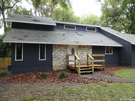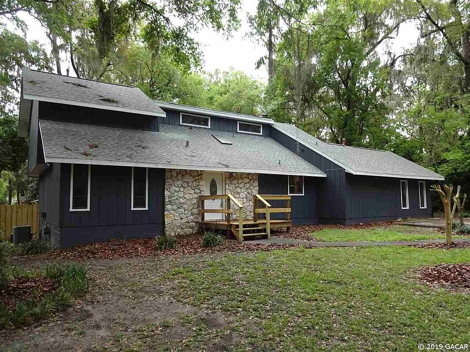 Unique 4bed/3bath floor plan with loads of space, lots of pizazz, quiet SW neighborhood. Brand new roof, new paint inside and out, new front door, new luxury vinyl plank flooring in in-law-suite and bonus room. Soaring ceilings in great room and dining room. Field stone fireplace. Large, updated kitchen beautiful wood cabinets, stainless steel appliances, center island gas cooktop, wall mount oven. 4BR/3BA includes extra suite with kitchenette set up for in-laws or guests. Huge bonus room. Dining room opens to a screened in patio with brand new, large wood decks on both sides, and privacy fenced yard. Master bath has separate shower and jetted tub. Convenient to all major hospitals, ???A??? rated schools, University of Florida, VA and shopping.