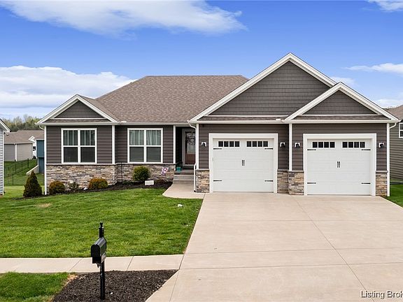This gorgeous 4 Bed/3 Bath home features a cozy front porch, foyer, spacious great room with 10' vaulted ceiling, open floor plan, and 1st floor laundry room with pocket door. Beautiful eat-in kitchen with stainless steel appliances, granite countertops, pantry, and roomy breakfast nook with sliding door that leads out to back 12x10 wood deck, which is perfect for relaxing or entertaining! Tranquil master suite offers elegant trey ceiling, spacious walk-in closet, and master bath with double vanity and large walk-in tile shower. Full, finished walkout basement features 4th bedroom, full bath, large storage room, and huge family room with sliding door that leads out to oversized back patio with fenced in yard. Sq ft & rms z approx.