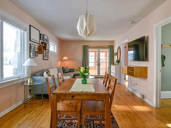 **Multiple offers received: highest and best due by 7pm, Saturday 2/8.** Sweet Minnehaha bungalow awaits its next stewards! Step inside the front door and enter the porch, vaulted and clad in pine with French doors that open into the home. Living room flows into an informal dining room with both bedrooms adjacent, all featuring original maple floors. Through the kitchen and at the rear of the house you’ll find a bright, cozy sunroom with multiple use opportunities (second living room or separate dining room are just two possibilities) overlooking the private backyard featuring a deck & raised flower beds. The garage has a spacious attached shed, and the unfinished basement has lots of space for storage along with a workshop bench ready for your projects. Updates include new furnace & water heater, privacy cedar fence, along with a newer roof & windows. Walk to the coffee shop just around the corner, Minnehaha Falls and the dog park, easy access to the light rail and a short distance to East Nokomis’ commercial district along 34th Ave S. See Home Highlights for full list of improvements.