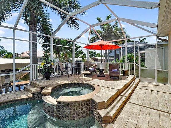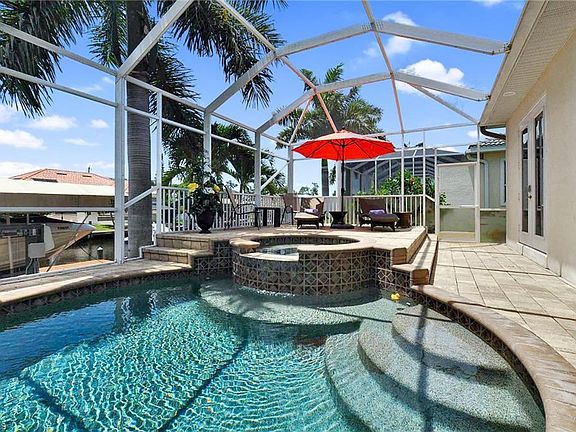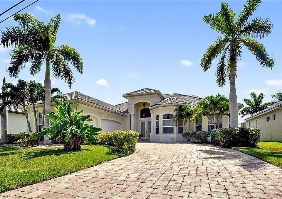 Absolutely beautiful western exposure Pool Home located in the prestigious Yacht Club area with sailboat access. .Second Home barely lived in. The river can be reached in 5 minutes. Only 1 mile from the Cape Coral Yacht Club & Cape Coral's beach. Home offers large living & family room, gorgeous kitchen with wood cabinets and high end granite, four bedrooms plus a den/office. Paver driveway, tile roof, 3 car garage, an electric heated jacuzzi and pool and a large paved patio area with a new summer kitchen. Head down to your boat dock on the lower level w/ a 10,000-lb lift to hold your boat.