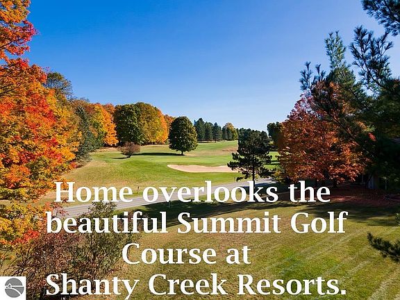 MANSO A-FRAME MID-CENTURY MOD CHALET living at its best! Newly remodeled (Aug-Oct 2024) includes removal of all wallpaper and boarders, new luxury vinyl flooring throughout the main level, all walls freshly painted, kitchen cabinetry freshly painted, new bathroom sink units, den converted to 4th bedroom . . . the list of upgrades go on and on! Make your resort living dreams a reality with this incredibly designed, unique chalet. Over 3,300 square feet of living space will give you ample room to entertain family and friends. The expansive living room enjoys sunset views, is open to the kitchen and the dining room area, and the gas fireplace keeps the home cozy during those cold winter days. Upstairs guest room is impressive at 18’x12’ and has a full bathroom available on the same floor. Main floor guest bathroom boasts the amenity of a $20K RANE walk-in tub/shower unit. Primary ensuite is massive at 25’x20’ with sitting area, office area, jetted tub, shower, dual sinks, walk-in closet and deck overlooking the Summit Golf Course of Shanty Creek Resorts. Adjacent new-addition 12x12 bedroom has a massive walk-in closet and its own private deck. Lower-level bedroom is nonconforming (no egress window) but is bonus space for you to utilize. Several closets, storage rooms, mechanical room, 2-car garage (size of a 3-car garage), several decks, landscaping irrigation, and approximately 2 acres at the end of the cul-de-sac, make for a private, charming home. Home will convey partially furnished. Access to the Shanty Creek Beach Club on Lake Bellaire is included. This remodel is a must-see!
