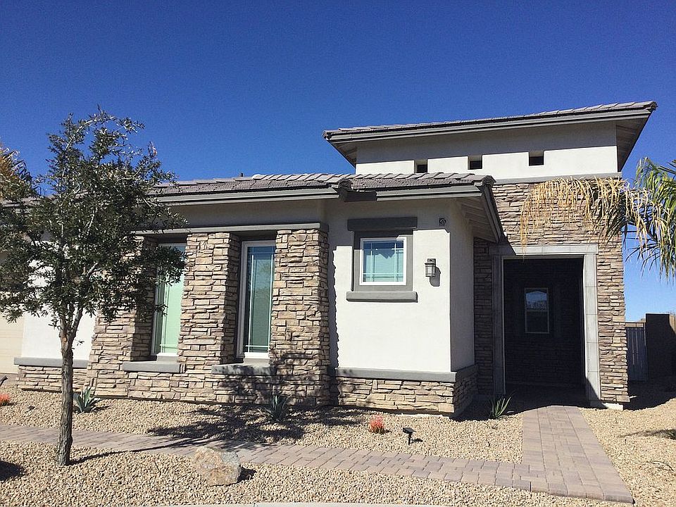 Contemporary single level estate home with casita and 3.5 car garage; great for home office or extended family. Upgrades: large format porcelain throughout, 12' ceilings, 8' doors, 2x6 construction, sliding glass walls, R38 insulation, sound insulation, surround system, Indoor atrium, supersized 19.5KW Panasonic Solar with Net Metering - Produces surplus energy (*ZERO monthly electricity bill*), unobstructed view of white tank mtns and park through iron fence backyard, stone exterior, gourmet kitchen and high end master bath, total perimeter 4K color night vision security cam system, pre-wired cat5 and data center, whole house vacuum system. Pelican whole house salt-less water conditioner and filtration. Large backyard (unfinished), buyer can finish to their specification. Premium view lot located in quiet and family friendly Palm Valley North association. No neighbors behind and no future development, view is permanent.