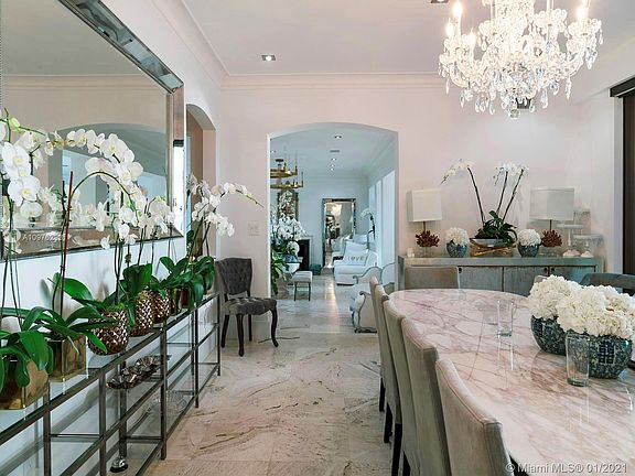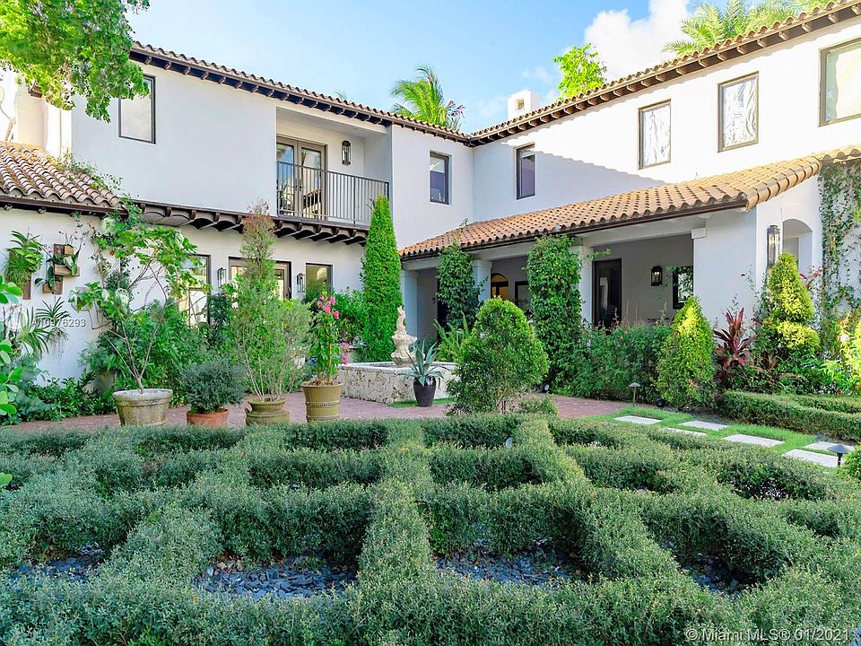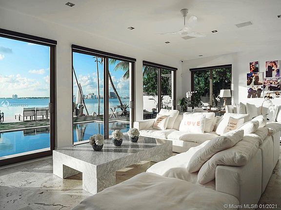 This Mediterranean Revival Bayfront villa along Miami Beachs famously desirable North Bay Road offers stunning views of Biscayne Bay and Downtown Miami from interiors tastefully renovated with a clean, modern sensibility. A large motor court leads to a courtyard entry set back generously from the street. Inside a sweeping staircase is the focal point of the foyer, off the formal living room. Enjoy sunset views from the private master terrace with its almost-invisible glass railing, off of the impressive master suite which includes a large bath, den, and walk-in closet. Also enjoy the lushly landscaped pool terrace, summer kitchen, office, and the convenience of a full maids quarters.