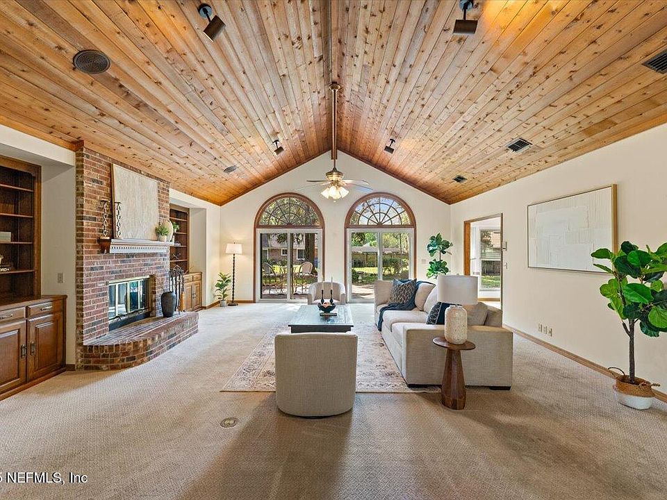 Classic charm like this home is rarely found! NO HOA or CDD fees! bring your boat, RV and toys, you can fit them all! Located in the prestigious Ortega area and just minutes to the renowned Timuquana country club. This home is the perfect blend of timeless beauty with the convenience you've been searching for! Situated on a large over half acre lot on a dead end street just seconds from the Ortega river and lined with gorgeous mature oak trees. Drive up and immediately notice the lush landscaping and semi circle driveway with tons of space for parking. Walk in to an inviting entry way that leads to stunning vaulted ceilings lined with cedar. Natural light pours into the back double sliders with a brick fireplace and built in bookshelves offering the cozy touch you've been searching for. On the West wing on the home you will find 3 bedrooms; 2 jack and jill bedrooms with a central connected bathroom and the oversized primary suite. The primary suite offers not one but two vanity spaces! Connected by the largest soaking tub you may have ever saw and a walk in shower. On the East wing of the home you will find another suite with en-suite bath, formal office (or dining room) spacious laundry room, kitchen and kitchenette. The kitchen has been thoughtfully updated with quartz counters, new cabinetry with soft close doors and drawers and a custom backsplash. Just off of the kitchen is a separate staircase up to the attic which could be converted into additional living space! Updates include a 4 year old roof, newer HVAC system, all new windows and more! Homes like this rarely come to market. Schedule your tour today!