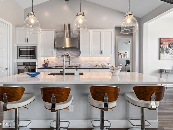 PRICED TO SELL! Magnificent stylish home in sought-after Granite Dells Estates! This 3 bed/2.5 Bath + OFFICE, ''Sunflower floor plan'', has the elegance of modern design influences. The front yard invites you with a calming splash of green turf. Make your way to the main entry through the covered patio with seating area. Enter through the modern paneled front door into the entry vestibule with an immediate view of the open floor plan with vaulted ceilings, wood beams, floor-to-ceiling custom tiled fireplace and massive sun-drenched windows. The incredible chef's kitchen is equipped with a suite of GE Café including; refrigerator/freezer, gas cooktop, dishwasher, and baker's French-door wall oven. The kitchen cabinets are a crisp white with stainless pulls and just the right amount of stylish glass door upper cabinets. There's ample counter space with a huge island, quartz countertops, stylish pendant lights, stainless farm sink, designer backsplash, and walk-in pantry. The flooring throughout the home is luxury polymer plank flooring (no carpet). The primary bedroom is an elegant retreat with ensuite that has quartz counters w/dual sinks, freestanding tub, custom tiled glass shower, and a large walk-in closet. This split floor plan has two guest bedrooms with a hall bath. The laundry hallway includes Samsung washer/dryer, features a drop zone and a powder room. There is added quality with upgraded cabinets, quartz counters, paddle fans, custom tile and plantation shutters throughout. Enjoy the indoor-outdoor living with this Large(.29 Acre) lot that has an oversized paver patio, aqua-glass firepit, relaxing turf areas, and maturing trees. The insulated garage is extra-large with 4 ft extension, and includes wall storage cabinets, ceiling mounted storage and a workbench. Also, includes a whole house water purification system. Granite Dells Estates is enlarging a wonderful community center, complete with pool, tennis, pickle ball, bocce ball court, fitness center, event lawn and community kitchen. Some furniture available for sale on separate bill of sale. This gem in Granite Dells Estates won't last long!