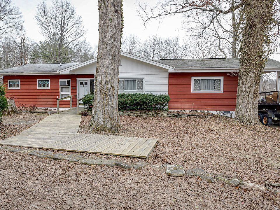 Don't be fooled by first impressions! This charming, multi-level cottage is everything you'd imagine in a Brown County home! LOADED w/character, from the circular wooden staircase down to the living rm w/ built in shelves & huge Brown County stone fireplace to the sunken conversation/sun room - this house is packed with WOW factor. Hardwood floors under many of the carpeted areas, including bathroom, dining room, entryway & part of the master. Spacious kitchen with tons of cabinets, pantry, two sinks & garden window. Master BR has private deck overlooking peaceful valley below. BEST OF ALL, this property meets setback guidelines for potential tourist home site! All this AND a pond on just shy of 5 AC! Don't judge this book by its cover!
