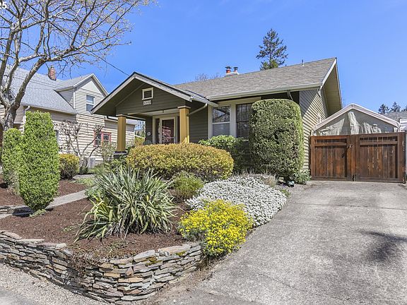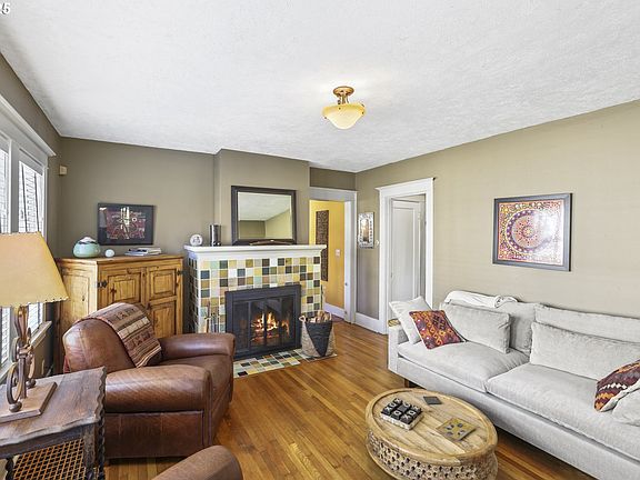 Fabulous, one-of-a-kind Bungalow in the heart of Woodstock! This 2 bed / 2 bath home beautifully blends charming period details with modern, stylish design. A thoughtful floor plan offers comfortable one-level living, with both bedrooms, bathrooms, and spacious living areas all on the main floor. From the charming living room with wood floors and a cozy wood-burning fireplace, enter into the vibrant, Spanish-inspired great room—featuring vaulted ceilings, open beams, skylights, and artisan details throughout. Highlights include Mexican Saltillo tile flooring, locally crafted custom wood windows, and fireplaces adorned with Pratt & Larson tile.The open kitchen is both attractive and functional with a Viking gas range, stainless steel appliances, eating bar, and custom cherry cabinetry. Retreat to the primary suite complete with a gas fireplace and a beautiful ensuite bathroom. The basement offers good ceiling height with space for a workshop, laundry, and generous storage. Key updates include a new high-efficiency furnace, central A/C, and a newer roof for added peace of mind. Get ready to enjoy summer nights on the inviting patio—complete with a built-in bar! The fully fenced yard is private, has room for gardening, and offers a seamless indoor/outdoor entertaining flow. This special home won’t disappoint, with its great energy and feel - all within easy walking distance of Woodstock restaurants, amenities, parks, and Reed College! [Home Energy Score = 3. HES Report at https://rpt.greenbuildingregistry.com/hes/OR10237533]