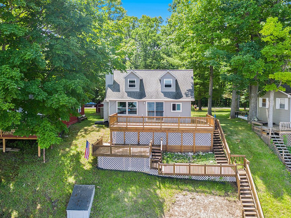 Waterfront Charmer - 50 ft of Private Water Frontage on Pleiness (Lost) Lake in Custer -approx. 110 acre all sports lake. Enjoy this adorable cottage or year round home with 3 bedrooms, Full bath, main floor laundry, 1 car detached garage w/heater and additional parking area. There is extensive, multi tier decking to accommodate all the fun, relaxing and entertaining you can imagine in your out door living space. Water front has a steel sea wall and private dock with sandy bottom water front to play and swim in. The open floor plan offers main floor bedroom and two more up. Living room has wonderful water views and sliders to the deck. Everything is neat and well maintained and ready for you to start creating your family memories at the lake. Buyer to verify all info/measurements.
