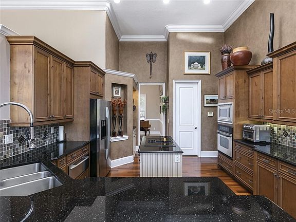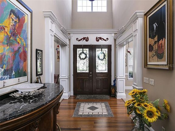 Located in guard gated Tildens Grove, and sited on a large home site, this custom built home is perfect for family living and entertaining. The double front doors create a refined entry. Opening to elegant coffered ceilings and hard wood flooring in the casually elegant formal areas. The private home office/library is nicely finished with hardwood flooring . At the center of the home, the gourmet kitchen is a chefs dream; elegant wood flooring and working island combine function and beauty with stainless steel appliances, lovely granite, stunning custom cabinetry, and a walk in pantry. The chefs kitchen opens naturally to the casual family areas featuring high ceilings and French doors leading to the covered porch. The outdoor areas are ideal for relaxing by the sparkling pool and spa, utilize the summer kitchen and dine al fresco on the pavered pool deck under the covered lanai. The romantic master suite is private and enjoys access to the outdoors through French doors. Finished nicely with his and hers master closets and a beautiful master bath complete with double granite vanities, walk in shower and garden tub. The great bonus room/flex space is perfect for movie night with the kids.