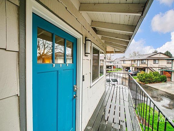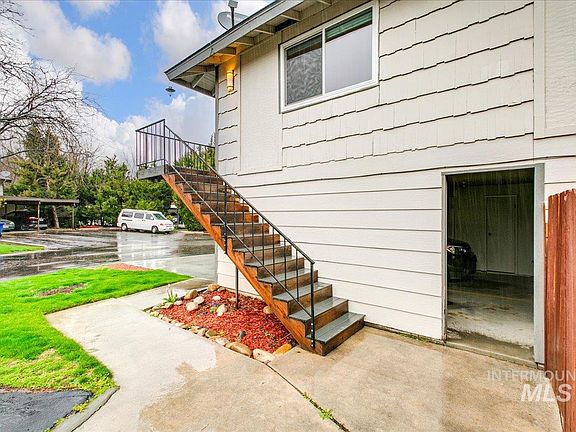 Centrally located, LOVELY AND AFFORDABLE updated townhouse in an ideal, quiet location on the Boise Bench! This two-bedroom one bath home comes is located in a a private area of Hillcrest Townhomes, close to common area and pool, with mature landscaping maintained by the HOA. Laminate wood flooring throughout, upgraded lighting, kitchen and bathroom. Two spacious bedrooms with the Primary bedroom featuring a large walk-in closet. Charming exterior with a private deck and stairway for access. HOA dues cover water, trash, sewer, roof, siding and exterior maintenance, plus access to the private community pool. Walking distance to restaurants, grocery store, coffee shop, gym, library - minutes to the freeway, downtown, BSU, greenbelt, shopping & airport. Washer/Dryer included and new A/C in 2022.