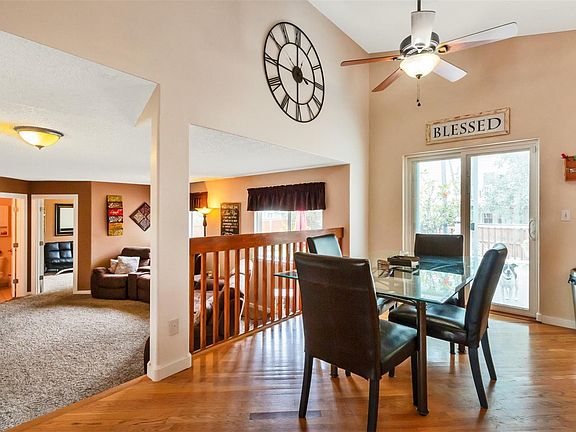 Nothing to do but move in! Wonderfully maintained home with open floor plan, featuring vaulted ceilings and numerous windows offering plenty of natural light. Main floor has living room, large family room and bedroom/study. Spacious kitchen with stainless appliances including double oven and beautiful hardwood flooring. Upstairs is complete with master bedroom and bath, accompanied by large secondary bedrooms. Insulated basement with extra storage space can be finished to your liking. New water heater, newer interior and exterior paint. Park like yard boasts stamped concrete patio off deck. Gorgeous two-toned trex deck. Enjoy the sitting area shaded by trees, trimmed out with beautiful flowers and plants, along with a designated garden area. Walking distance to new Thornton Recreation Center, blocks from school and minutes from Outlet mall and restaurants.