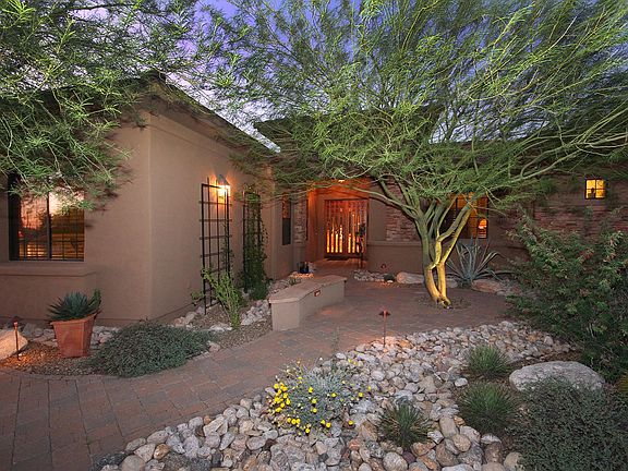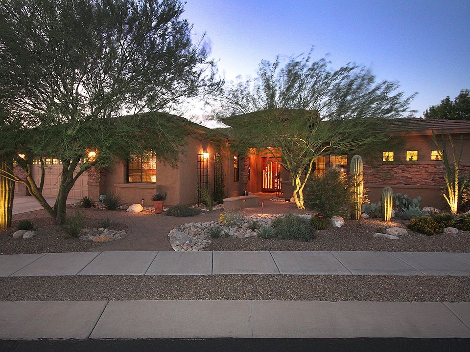 For more information on this property, contact the Listing Agent, Susanne Grogan at (520) 241-8099 or SGrogan@LongRealty.com. This meticulously maintained home in gated Fairfields River Estates was awarded the Grand Prize in 2009 for Xeriscape landscaping by Tucson Botanical Gardens. Enter home to spacious living room/dining room framing spectacular Catalina Mtn views. Luxuriously appointed 3,964 sq. ft., four bedrooms including separate guest quarters w/kitchenette and ensuite bath, amazing chef's kitchen with GE Profile appliances and custom maple cabinetry flows into family room that is perfect for entertaining. Master suite features over-sized tile shower in bath w/dual showerheads, marble floor and frameless glass panels. The back yard is a private oasis w/rock waterfall, banco seating w/cushions, artificial grass and unobstructed mountain views. This stunning one-of-a-kind home exudes casual elegance.