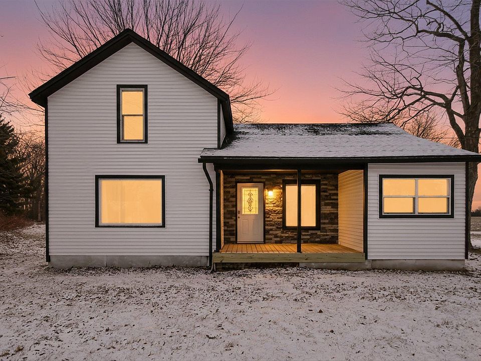 Welcome to this completely renovated home! Situated just outside of town, it has all the charm of a farmhouse, but none of the worry, because this house has been renovated from top to bottom. New roof, new siding, and new flooring and paint throughout. The kitchen and both bathrooms have undergone complete renovations. The large bedroom upstairs enjoys a private bathroom and large walk-in closet. The kitchen boasts a spacious island with seating as well as a separate dining space, making it perfect for entertaining and family meals. Set on one acre, and surrounded by mature trees, the house awaits a new owner who will enjoy the feeling of farmhouse living. Don't hesitate; schedule a showing today!
