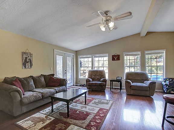 Great rural property on 6 private acres w/6 stall barn, tack room & storage. Water inside barn. Loads of mature cedar trees. Manufactured home has new roof, carpet, paint & vinyl. 2 car detached garage. Hot tub is excluded. Clear or thin some trees for animals.