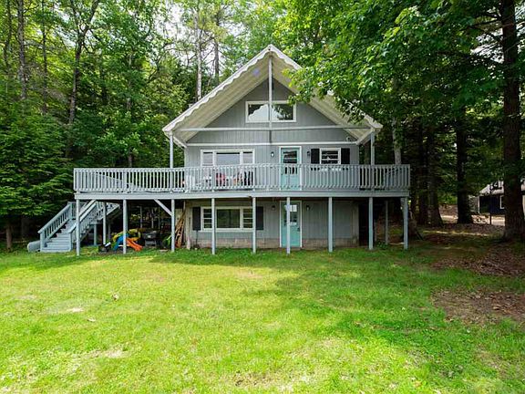 Mousam Lake- This could be your happy place... This 3 bedroom, 1 1/2 bath chalet has been completely renovated and is simply GORGEOUS! With quartz countertops and stainless steel appliances, you will never feel that this is a "camp". With a wrap around deck and large yard, your lake front retreat has just as much to be desired on the outside as on the inside. Life is good, but it's better at the lake.