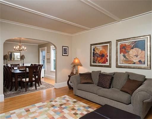 Rarely available, unusually spacious, bright, south facing 4 bedroom 2 bath condominium unit with over 2700 square feet of living spacee within an easy distance from 2 "T" stations, the Boston College line and the Newton Centre station. Located near shopping, restaurants, houses of worship, Ward School, and major highways. Renovated in 2005 and originally built as a two family, this second and third floor unit has more space than most single family homes in the area. Lots of architectural detail, gorgeous foyer with stain glass window and French doors, one car garage parking plus room for another off street. The laundry is off of the kitchen and the wonderful flexible floor plan with two master bedrooms (one on the second and one on the third) alows for great versatility. This is a wonderful opportunity to live in one of Newton's most sought after neighborhoods and location.