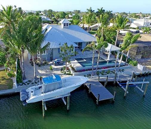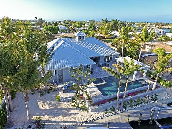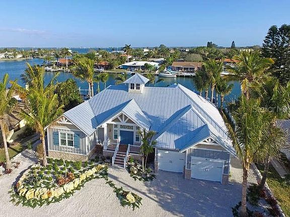 "Grand Canal" Home on Anna Maria Island. Find yourself emerged in the luxury living of this custom built home located on the widest and deepest canal on the island. This home sits on the North side of the canal which gives you southern exposure all year long. Featured in the 2016 Home & Design Magazine Suncoast Edition. Take in all the beauty when you enter the front door. 3 Bedroom/ 3 Bathroom open floor plan coastal design. Boasting Quartz countertops throughout, Medallion wood cabinetry, high end appliances, large farm sink, butler's pantry/bar, Timber Ash ceramic tile throughout, vaulted Ceiling with wood beams, wainscoting and shiplap, built-in bunk beds, built-in entertainment center, and the list goes on and on. Walk out back on a beautiful travertine patio to the pool, hot tub, and outdoor kitchen cabana with 3 grills. Listen to Sonos and surround sound inside and out, Ring alarm system, landscape lighting, 900lb outdoor ice machine, dock with 2 lifts (10,000lb and 16,000lb), dock lighting, outdoor shower, underwater lights, and a fishing tackle room as a bonus! Optional furnishings included. So soak up the sun by this gorgeous pool, jump on your boat right off of your very own dock to catch a sunset, and enjoy island living in this magnificent home. This is a must see!
