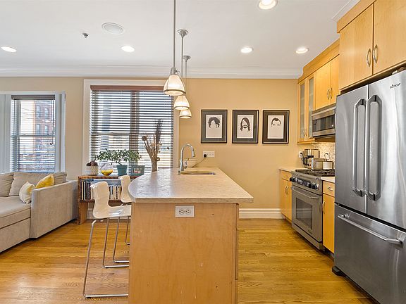 Welcome home to this stunning 2-bedroom, 2-bathroom in the heart of Hoboken at The Nicole. One of the standout features of this residence is the private elevator that opens directly into the unit, ensuring both convenience and privacy. Additionally, this home comes with the added benefit of a 1 garage parking spot. As you step into this light-soaked home, you'll be greeted by multiple windows that invite abundant natural light throughout the day, creating a bright and inviting atmosphere. The open floor plan, complemented by hardwood floors and crown molding, provides a generous living space perfect for both relaxation and entertainment. The master bedroom offers a serene retreat with its own terrace. The accompanying master bath is a luxurious sanctuary, featuring a soaking tub, walk-in shower, and double sink vanity. Enjoy the convenience of a washer and dryer within the unit, adding to the ease of everyday living.