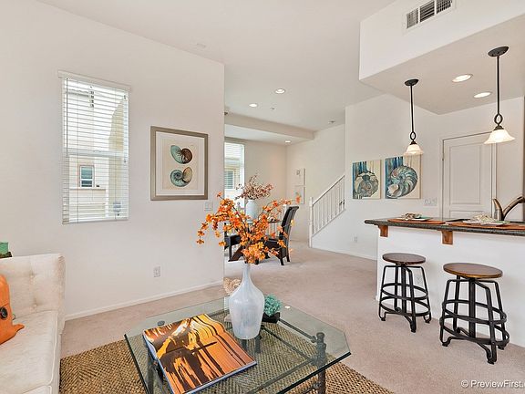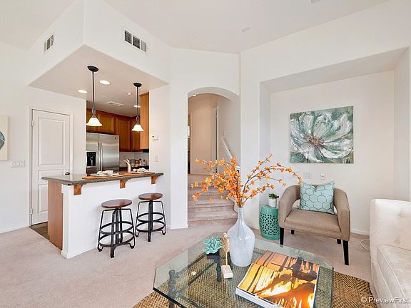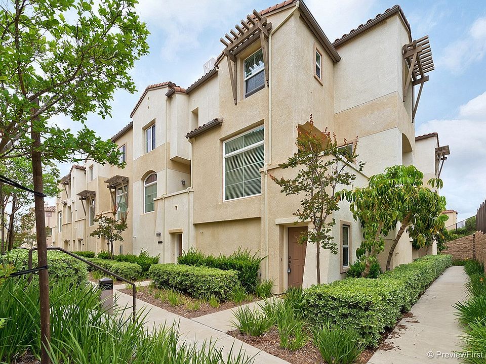 Adorable end unit townhome in beautiful Coronado Ranchwithin minutes of Cal State Univ San Marcos. This lovely home has 3 bedrooms 3 full baths & attached 2 car garage. It is upgraded w/granite kitchen counters stainless appliances slate kitchen & bath floors custom tile counters & surround in master bath & upgraded counters in secondary baths. Includes central A/C refrigerator washer & dryer & is wired for sound. Views of the hills w/ lots of light. Beautiful pool spa exercise room clubhouse.