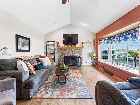 Prepare to be impressed! The owners have meticulously cared for this home and made many improvements along the way - there is nothing to do but move in, relax & enjoy! This home sits on a spacious .59 acre lot on the edge of Sycamore providing a peaceful setting with quick access to restaurants, shopping, schools & more. The covered 9x9 porch entry leads you in to the living room featuring a volume ceiling, hardwood floor, large bay window, and wood-burning fireplace. The adjoining kitchen has been completely remodeled and features luxury vinyl plank flooring, upscale lighting fixtures and cabinetry with beautiful backsplash & quartz counter, undermount sink, breakfast bar, stainless steel appliances, designer ceiling with a wood beam providing separation of the kitchen & dining area with slider door for easy access to the paver patio & covered deck. The master suite features bamboo flooring, 3 closets, ceiling fan, volume ceiling, full private bath with pocket door, and slider door to a 15x7 deck - a cozy spot to sit and enjoy a night-cap! There are 2 additional bedrooms featuring hardwood floors, ceiling fans & closets. The guest bath is convenient to the bedrooms and has been updated. Located off the kitchen, you will find a bright & cheery laundry area equipped with washer & dryer as well as plenty of cabinet & counter space! The breezeway connects the 2 car garage to the home and also has easy access to the covered 14x11 deck - a space you can truly enjoy while entertaining or just relaxing with a good book! Need more space? Head downstairs where you will find a large recreation/family room area, 3rd bath, storage area, and workshop! For additional storage needs, you will find a shed at the back of the lot - great for storing those seasonal items! Recent updates include: roof (2022); kitchen remodel (2020); water heater (2019); AC & HVAC (approx 7 years); windows & vinyl siding (2009/2010); and master bedroom addition (2009/2010). Are you ready to make this your next "Home, Sweet Home"? Schedule your personal tour today! *Back-up offers welcome!*