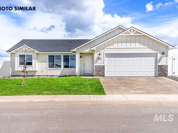 Welcome to the Chamberlain by Agile Homes. This beautiful home is located in Fruitland in Aspen Meadows. Featuring 3 bedrooms, 2 bathrooms w/ insulated garage. You'll love the open concept that boasts 9' ceilings & a spacious kitchen with a large corner pantry, granite countertops, a full-tile backsplash, custom  cabinetry, stainless steel appliances, & breakfast bar for additional seating and workspace. LVP flooring runs through high-traffic areas of the home for easy maintenance. The great room is designed for an open, grand feel with vaulted ceilings carrying into the living and dining areas. The 15x12 master bedroom has a generous walk-in closet, a master bathroom that has a step-in shower with glass doors, and a double vanity. Outside will include covered patio, full fenced back yard, sod in front and seed in the back with full automatic sprinklers. 12ft RV gate allows for RV parking!  ***Photos are Similar***