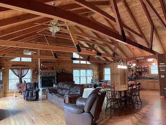 This charming true log Appalachian style basement rancher is a must see.Set in a private wooded farm style environment. The two-story barn greets you as you enter the drive. The barn could easily be converted into a workshop, storage or extra living space.Inside the home you find 4 rooms being used as sleeping quarters along with a den and office. The all wood great room has exposed beams with soaring ceilings and a stone stacked fireplace to cozy up to. There is also has a wood burning stove in the basement. Spend your mornings sipping coffee or your evenings relaxing in a rocker on the front or back covered porch. This home has so much to offer for your personal residence, overnight rental or multi generational home. Call today for a private tour.