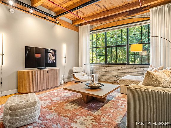 Step inside this one-of-a-kind, two-story condo and experience the historic character and modern luxury. With over 2,200 square feet of industrial-style living space, soaring ceilings showcasing exposed wood beams, original brick and stone walls, and timeless hardwood floors. Wake up in one of two spacious bedrooms and enjoy the privacy of two full baths, each with tile and granite plus a bubble tub and separate shower. From nearly every room, you'll be treated to panoramic views of Prospect Park—your own urban oasis just beyond the windows. Elevator access opens directly onto each floor, the building's premium amenities await: challenge friends in the game room, catch the latest release in the private screening theater, or host an evening barbecue on the grilling patio. Secure mail rooms and entry systems add an extra layer of peace of mind.